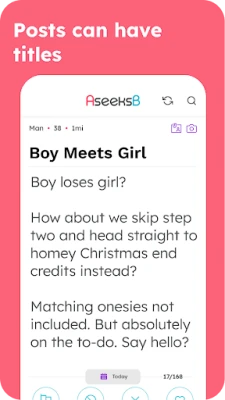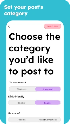 - Create Multiple Posts: We understand that people can have more than one way to express themselves. That's why we allow 7 active posts at a time, offer 6 different post categories to choose from, and allow users to tag their post as kink-friendly if they'd like to