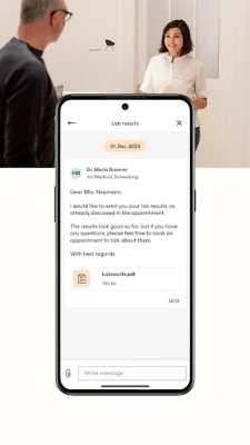 Receive lab results and other documents in the app. You can address questions or requests such as prescriptions easily by sending a message to avi.