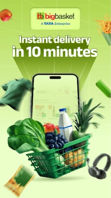 Introducing bigbasket now: Get your groceries delivered in 10 minutes. Choose from 20000+ grocery essentials. Available only in select cities.