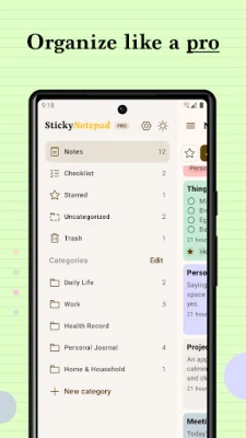 Sticky Notepad is a small and fast app to create, edit any notes in a simple way. With this note taking app, you can write notes, memos, messages, shopping lists and to-do lists.