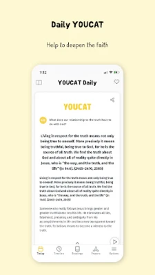 * Share your thoughts and moments with the YOUCAT Daily app on social media.